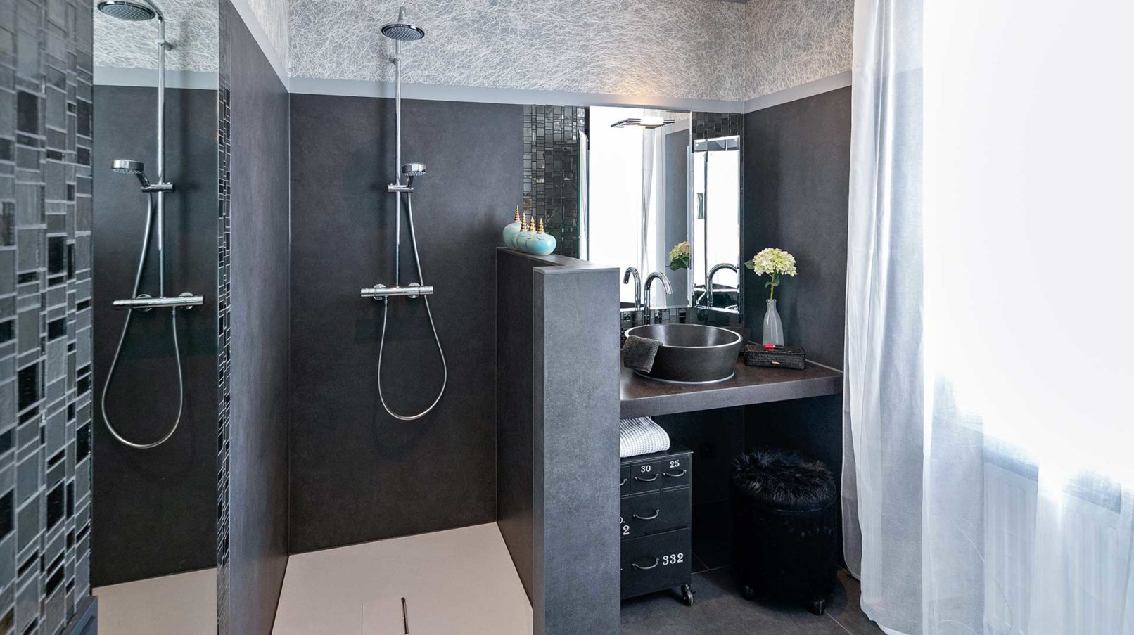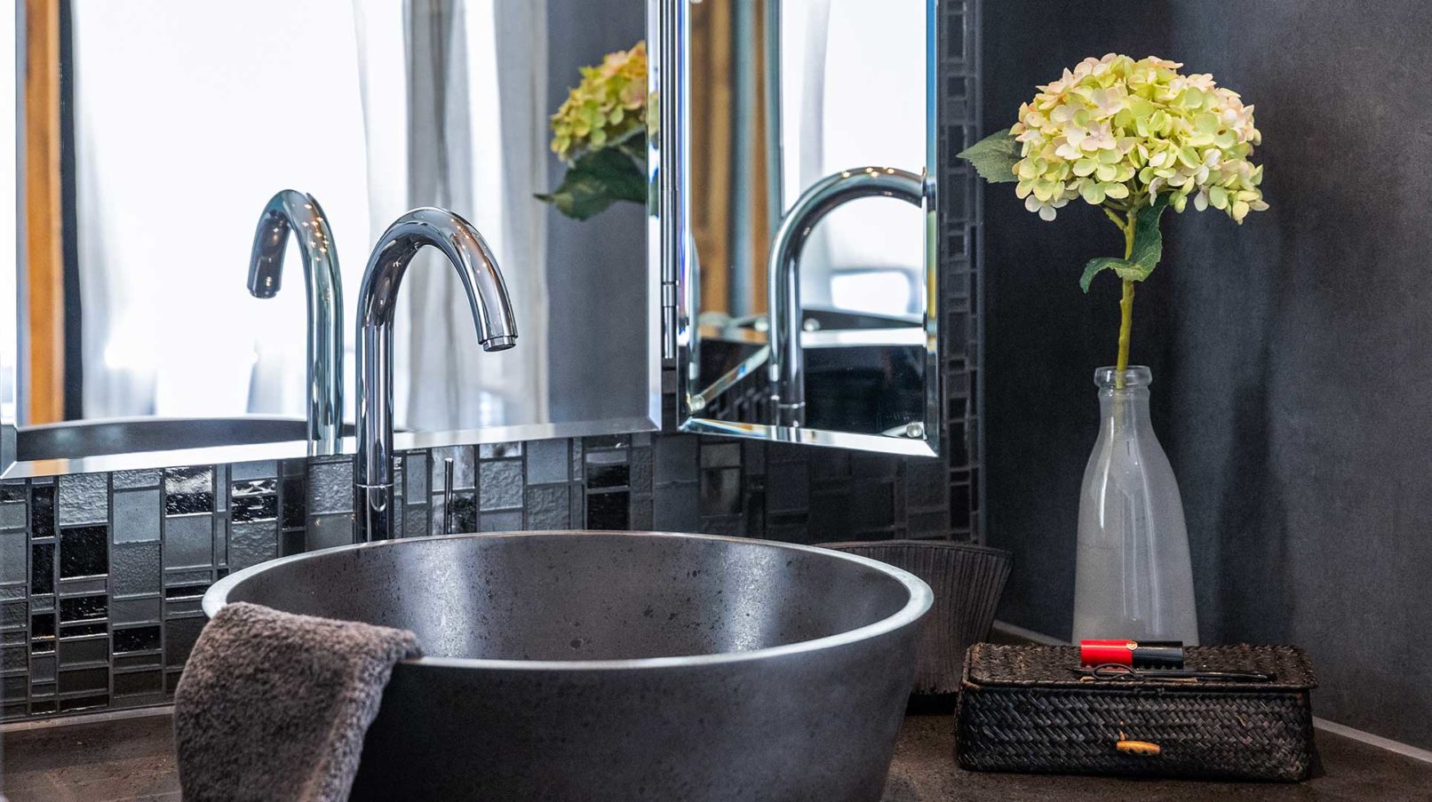 Dolerit Badezimmer im urbanen, formschönen und funktionalem Naturstein Design